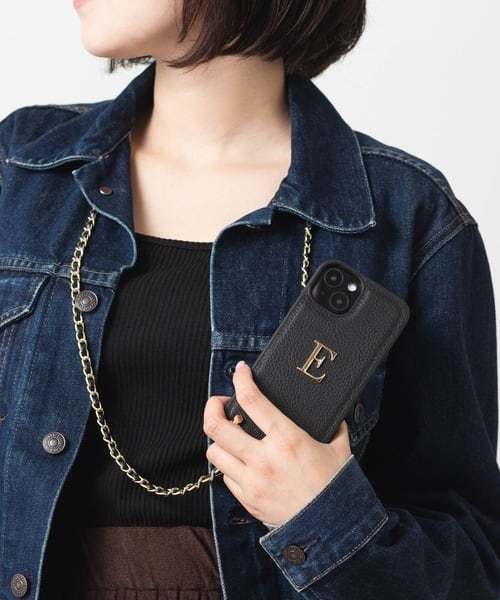 イニシャル PUレザー チェーンストラップ付 iPhoneスマホケース